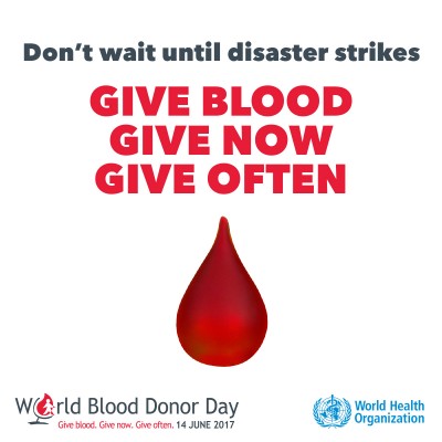 This year’s campaign will focus on blood donation in emergencies. In crisis or emergency situation, the natural human response is “What can I do? How can I help?”. Therefore, the slogan for the 2017 campaign is: What can you do?, with the secondary message: Give blood. Give now. Give often.